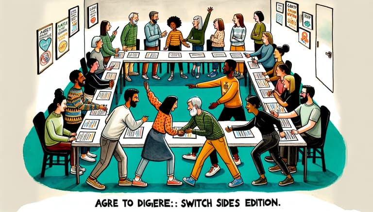 - Switch Sides: Instruct participants to switch sides and prepare new arguments based on the opposing viewpoint.