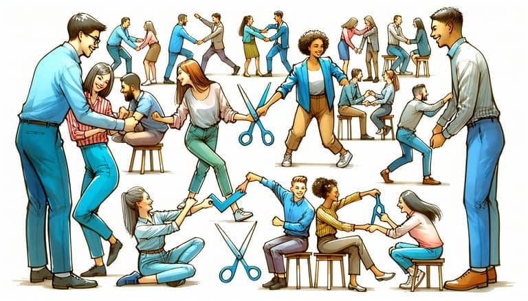 4. Warm Up Participants - Encourage participants to practice scissor movements in unison, breaking down silly barriers.