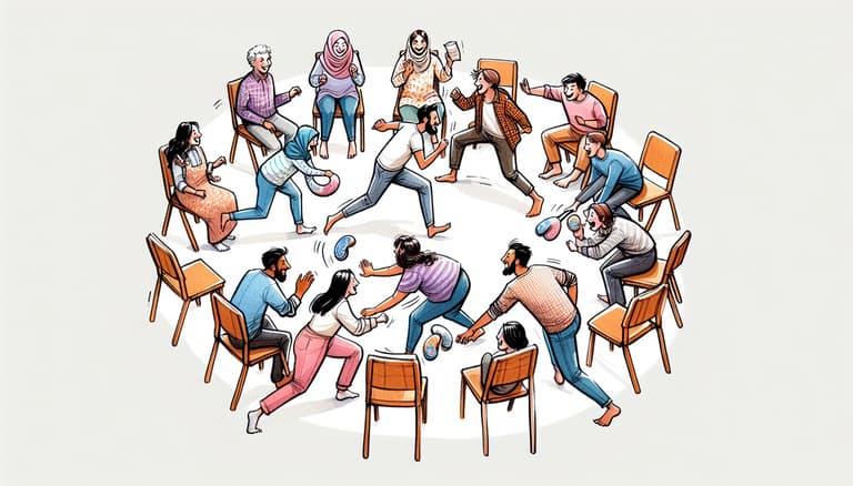 - Set up the game area: Arrange chairs in a circle and choose a volunteer to stand in the middle. The volunteer should hold onto a soft item, like a book or a small pillow.