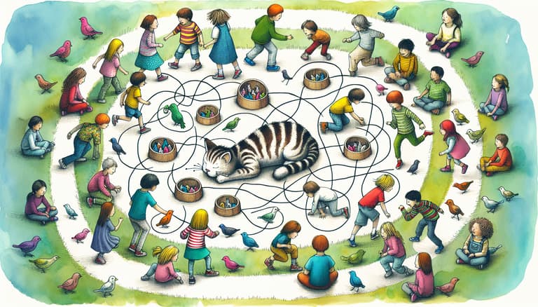 Additionally, the Cat and Sparrows game fosters social interaction among children, which is particularly beneficial in icebreaker situations. By having kids move around and interact with one another in a playful context, they can build connections, learn to communicate effectively, and develop empathy and understanding towards their peers. The game’s dynamics also promote teamwork and cooperation, as the Sparrows work together to avoid being caught by the Cat.