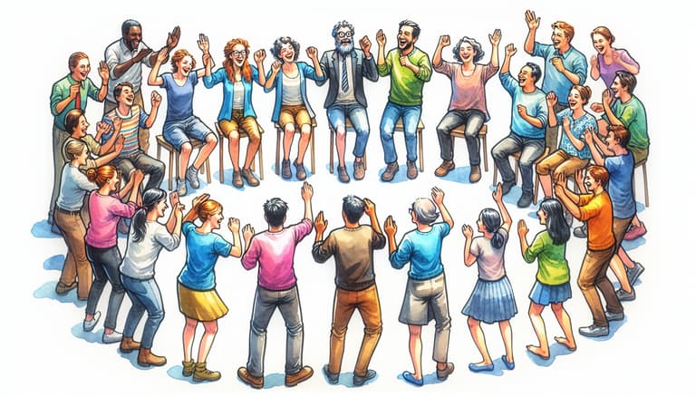 - How did you feel when you had to quickly switch between slapping your thighs and performing another player’s animal gesture? This question can help participants reflect on their ability to stay focused and adapt to changing situations, as well as their willingness to engage with others in a lively and dynamic way.